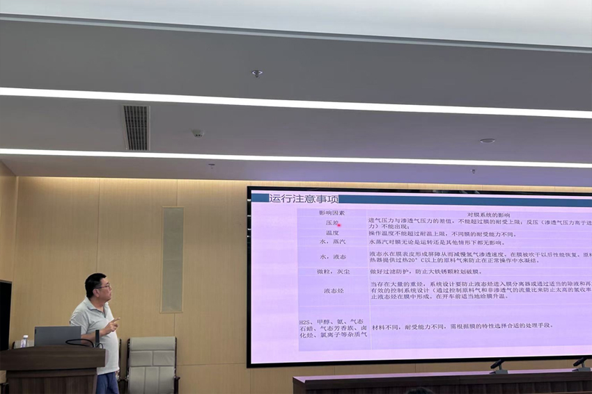 2024年8月12-15日,由中國膜工業(yè)協(xié)會舉辦的氣體分離膜技術(shù)及應(yīng)用高級研修班在南京召開,我公司作為主講單位之一,在培訓(xùn)班上進行了《聚合物氣體分離膜典型工程案例》課程的講座,詳細介紹了氣體分離膜技術(shù)在各領(lǐng)域的應(yīng)用及未來的發(fā)展方向,得到了學(xué)員的好評。