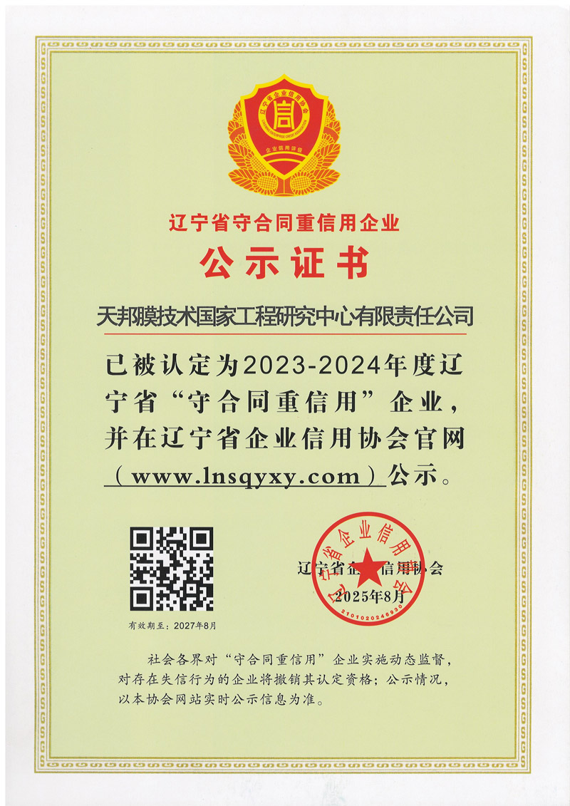 公司榮獲2023-2024年度遼寧省守合同重信用企業