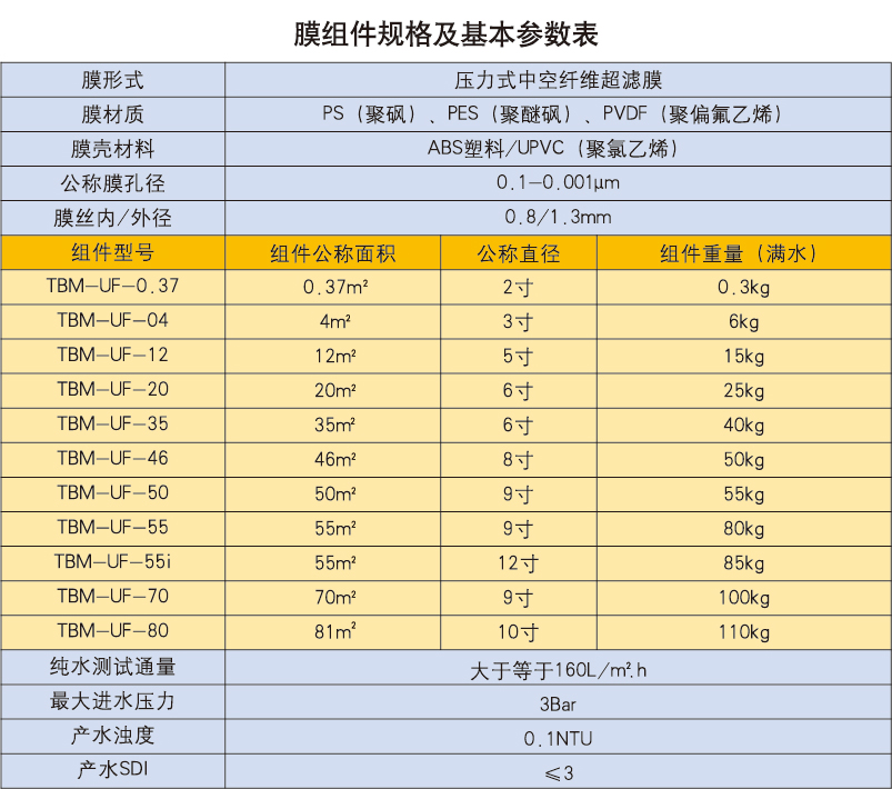 TBM可以提供多種規(guī)格和型號的超濾膜元件,能適應(yīng)各種環(huán)境、各種規(guī)模的水處理項目。